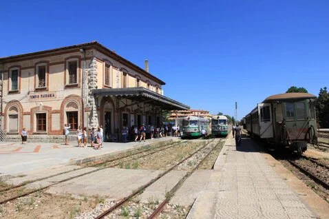 Giunti alla Stazione Ferroviaria di Arzachena, potrete partecipare al laboratorio di ceramica, prima che, alle 9:40 il fischio del vecchio Locomotore vi chiami a bordo delle carrozze Breda, che da circa 100 anni sferragliano sulla linea a “scartamento ridotto”, realizzata durante la rivoluzionaria epopea sociale e industriale, che dalla metà dell’ottocento, travolse anche l’autarchica Gallura. Dai finestrini, tra mammelloni granitici ed il verde dei boschi a sughera, ancor oggi si scorgono le cussorgie e gli stazzi, filo conduttore della storia agropastorale di questi luoghi. Si incontrano le stazioni di Caldosa, Capichera e Oddastru, prima di giungere a quella di S.Antonio di Gallura ed infine alla fermata sul Lago di Liscia. Ci attenderà il romantico Battello, con cui muoverci sul Lago di Liscia. Parleremo dei liscesi e della nascita della Costa Smeralda, mentre ammireremo il bel contesto paesaggistico. Sbarcati sulla sponda opposta, un tratto di cammino (+/-600m) ci condurrà ai celebri olivastri millenari di Luras (S'Ozzastru de Santu Baltolu), ma anche alla ristoratrice degustazione, sotto l’ombra dell’uliveto, posto in posizione panoramica sul lago. Nel primissimo pomeriggio un Pullman GT ci consentirà lo spostamento all’area archeologica prenuragica (5.000 anni fa) con i Dolmen “Ladas” e “Ciuledda”. Nuovamente in Pullman per giungere a Tempio Pausania. La “Città di Pietra” (Vittorio Emanuele I nel 1833) ci regala un breve itinerario tra viuzze, piazze e chiesette, sino alla Stazione Ferroviaria (con i dipinti in “Stile Liberty” di Giuseppe Biasi -1931-) e le adiacenti Officine Ferroviarie delle linee Palau-Sassari-Alghero (rimaste incantate ai primi anni Trenta, sono musealizzate e con i macchinari ancora funzionanti). Sono le 16:00 e l’esperienza in trenino verde riparte, rinnovandosi a bordo di un convoglio differente. Sarà infatti l’Automotrice Ade del 1958 a condurci sui binari del rientro. Prima a Nuchis, quindi Luras-Calangianus, narrando del leggendario “Muto di Gallura”. Quel Bastiano Tansu che visse in latitanza la faida tra i Vasa e i Mamia, prima di venire presentato al mondo dal Costa nel 1884 e riportato ad una terza vita pubblica dal successo dell’omonimo film (2022). Giungeremo al Lago Liscia con uno spettacolare passaggio sul ponte, quindi alla Stazione di Sant’Antonio di Gallura e ancora a quella di Arzachena. Ore 18:20, avventura terminata, felici e carichi di esperienze da raccontare.